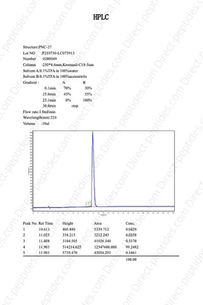 Buy PNC-27 peptide America with 99% purity from Direct Peptides, made for scientific research. Each product is third party tested to ensure high quality and reliability, giving researchers confidence in their results. Count on our peptides for safety, accuracy, and consistent support in your work.